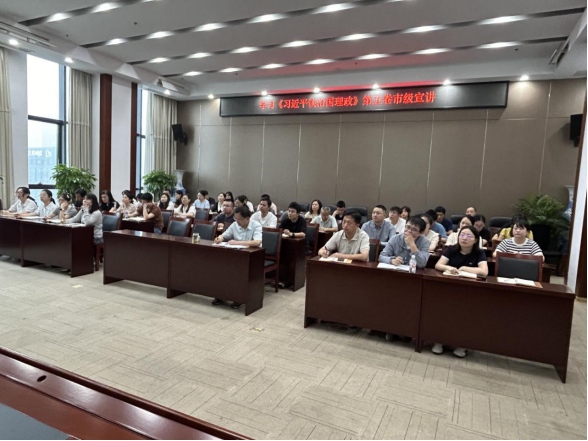 9月28日上午,學(xué)習(xí)《習(xí)近平談治國(guó)理政》第五卷市級(jí)宣講團(tuán)成員、市委黨校田治安教授來集團(tuán)公司作專題輔導(dǎo)報(bào)告。集團(tuán)公司和市國(guó)控集團(tuán)、市文投集團(tuán)部分黨員同志、年輕干部、關(guān)鍵崗位人員、青年團(tuán)員代表共有50余人參加。